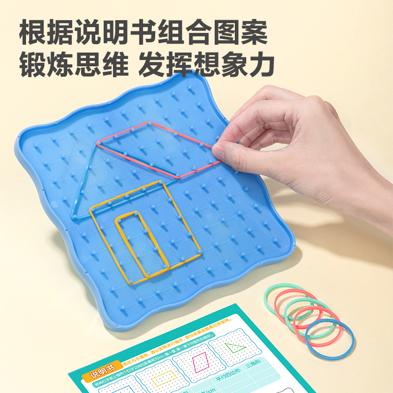 • لوحة زرقاء لتشكيل الأشكال الهندسية باستخدام الأربطة المطاطية