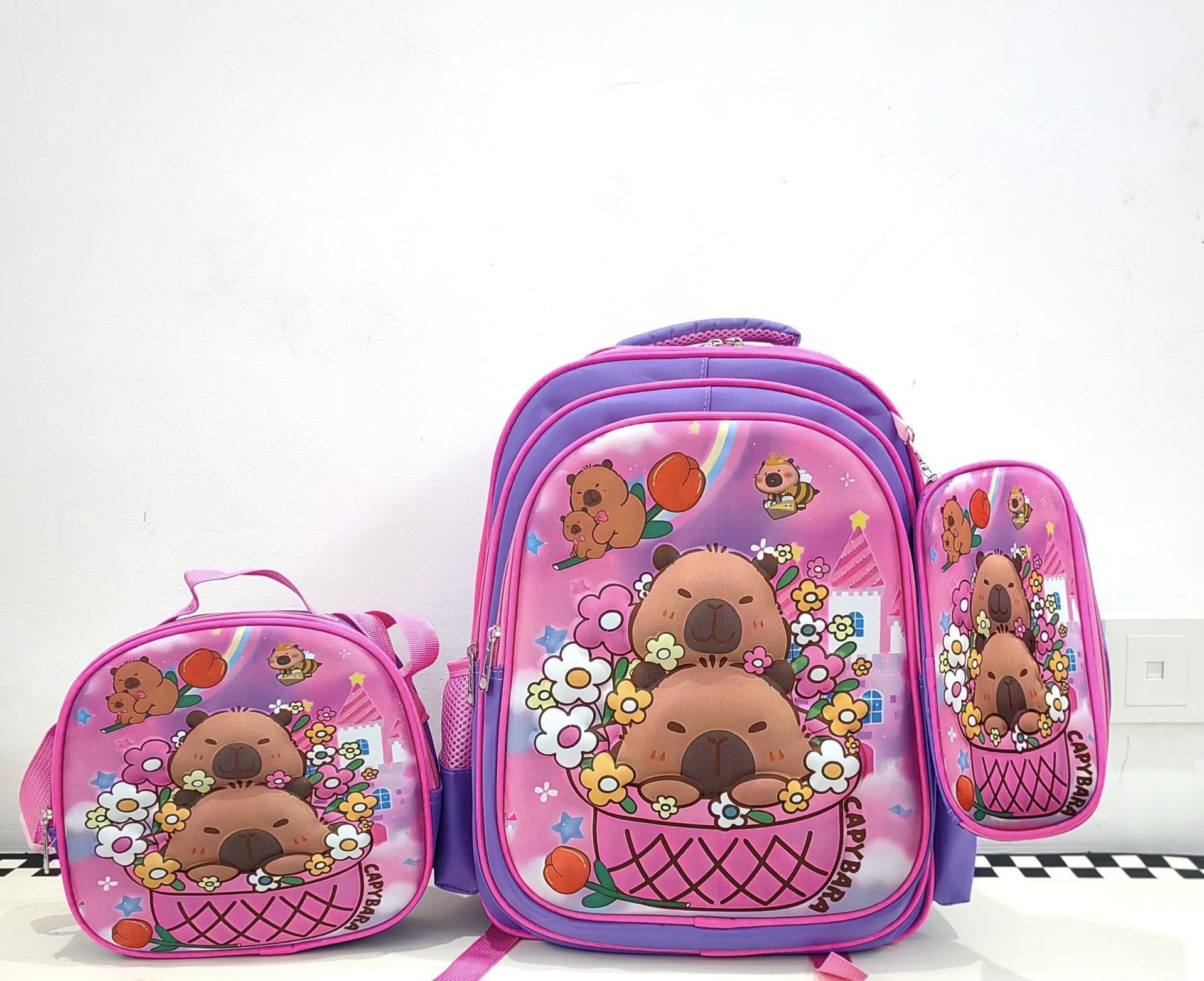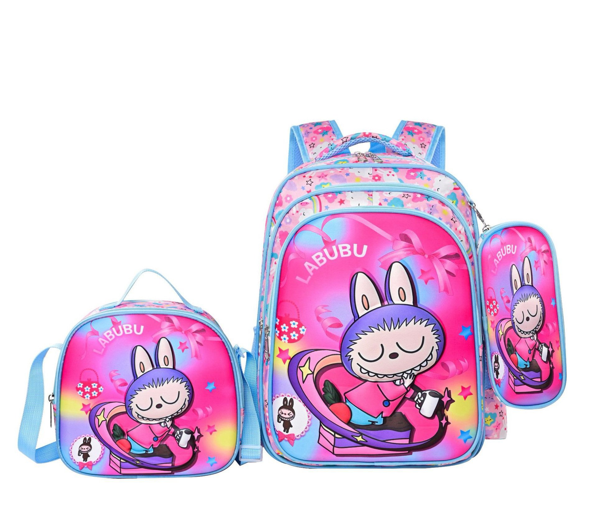 مجموعة حقائب مدرسية بتصاميم كرتونية ، تتضمن المجموعة من 3 قطع: حقيبة ظهر مدرسيةحقيبة طعام معزولةمقلمة لحفظ الأدوات المكتبيةتتميز الحقائب بتصميم متناسق ومناسب للأطفال