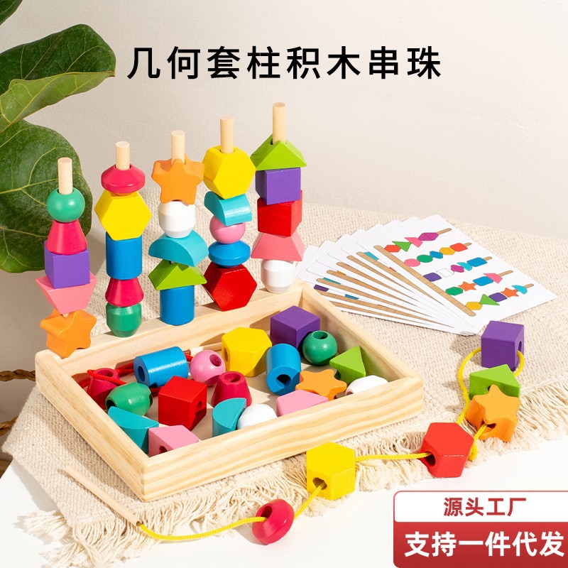 تُعرف باسم "أعمدة التكديس الهندسية مع خرز الترتيب" أو "Geometric Stacking Column Building Blocks String Beads".